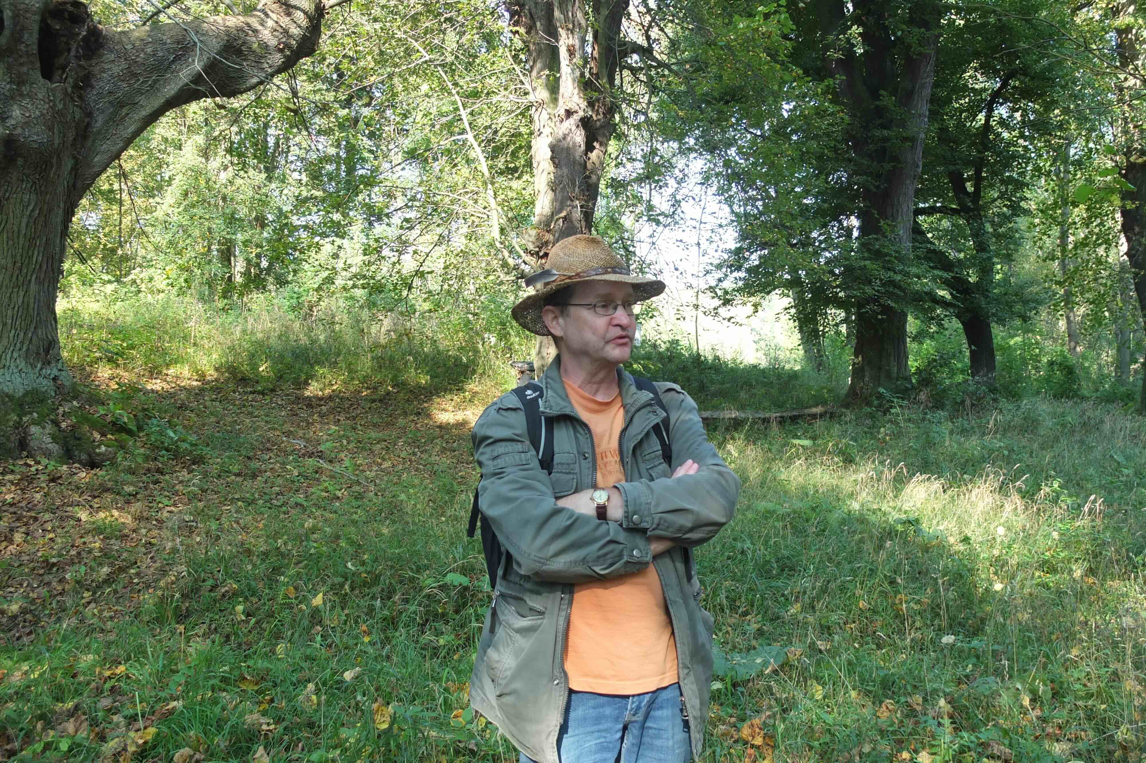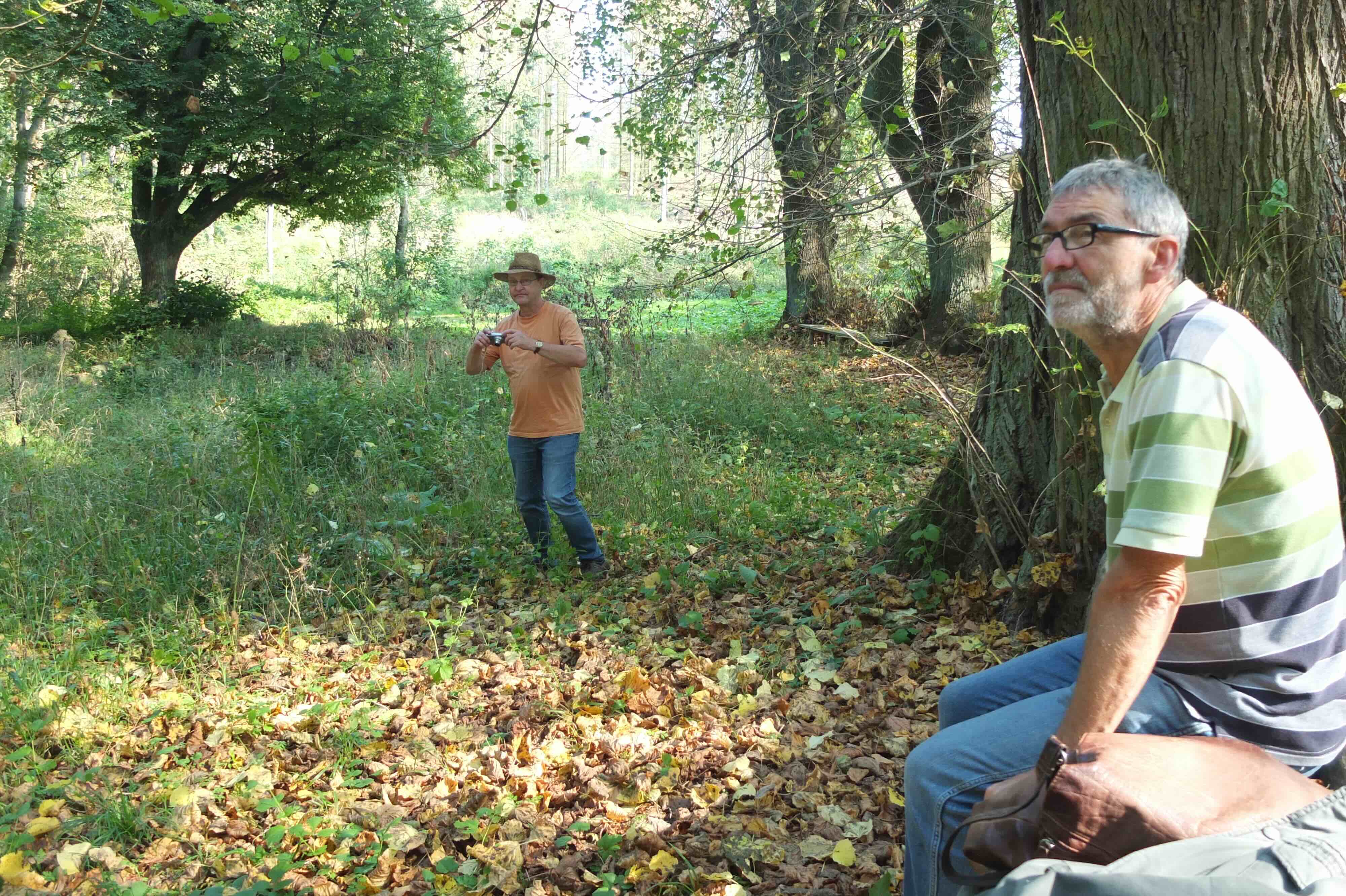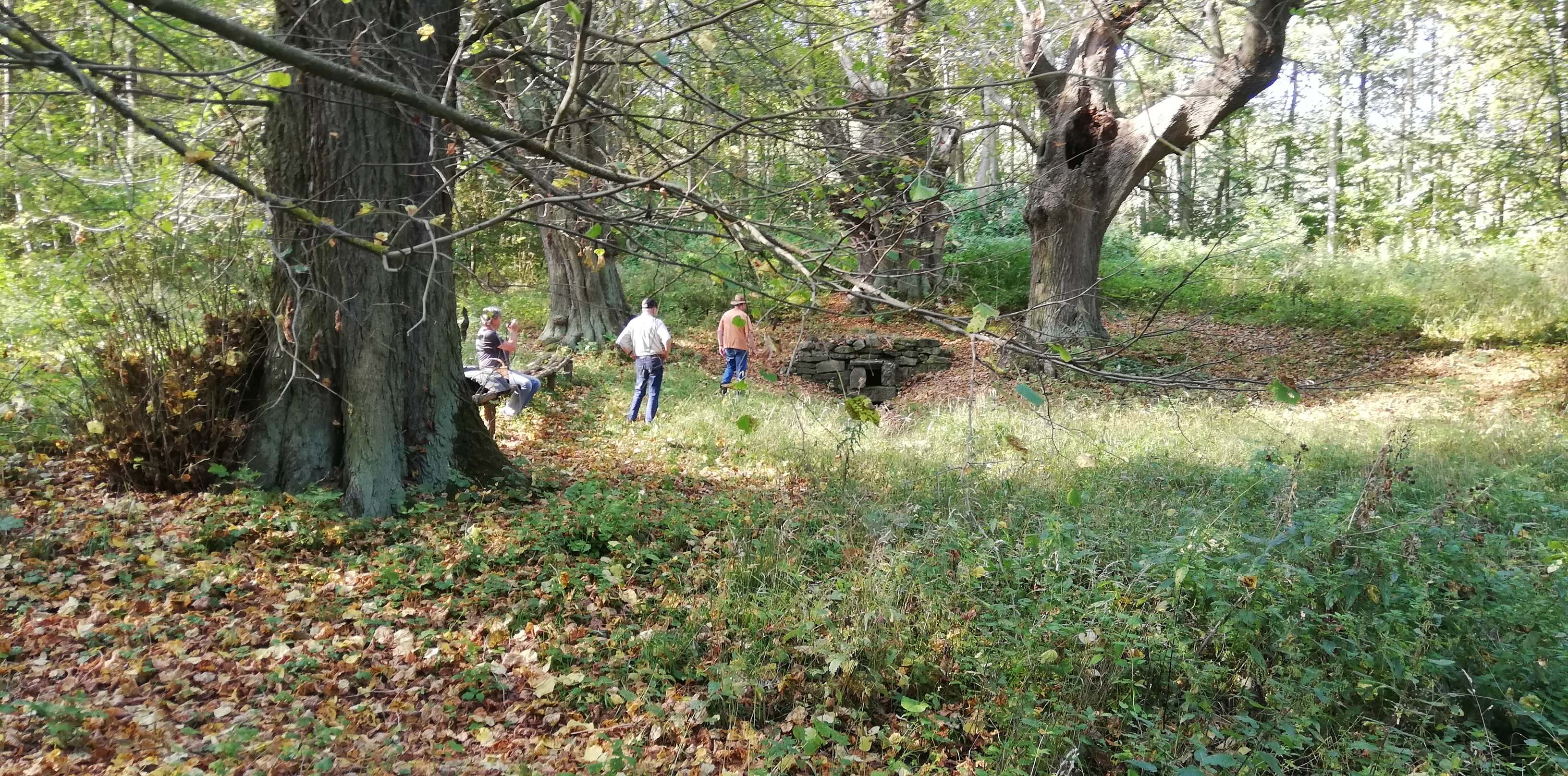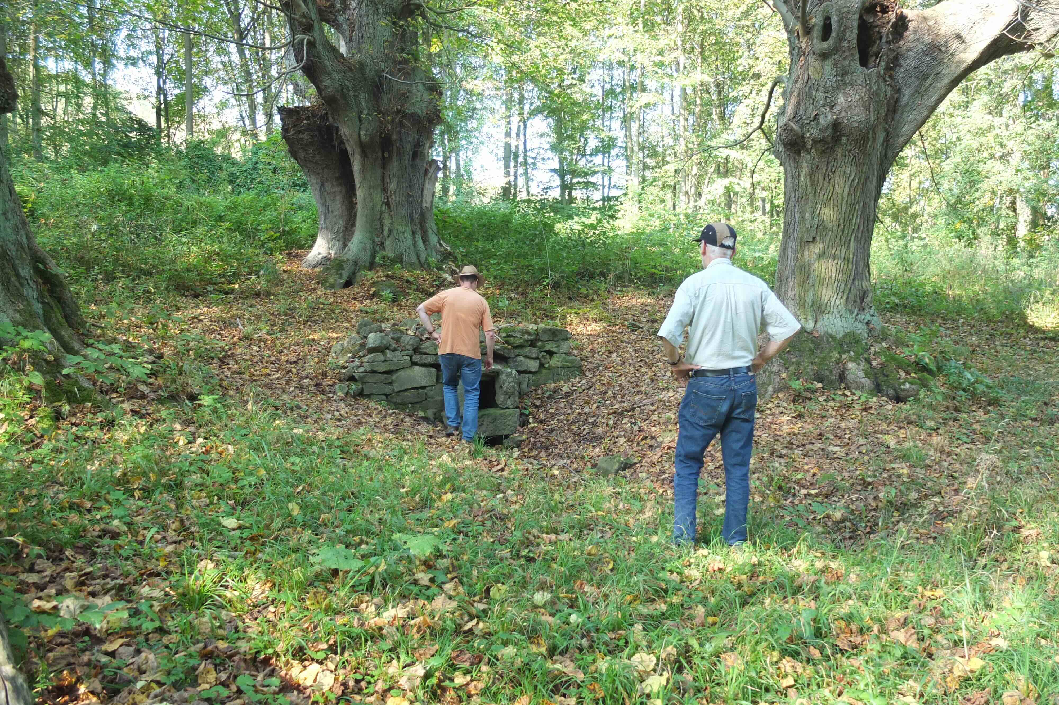 Spaziergang zum weitgehend versiegten Mutzenbrunnen zwischen großen, alten Eichen.