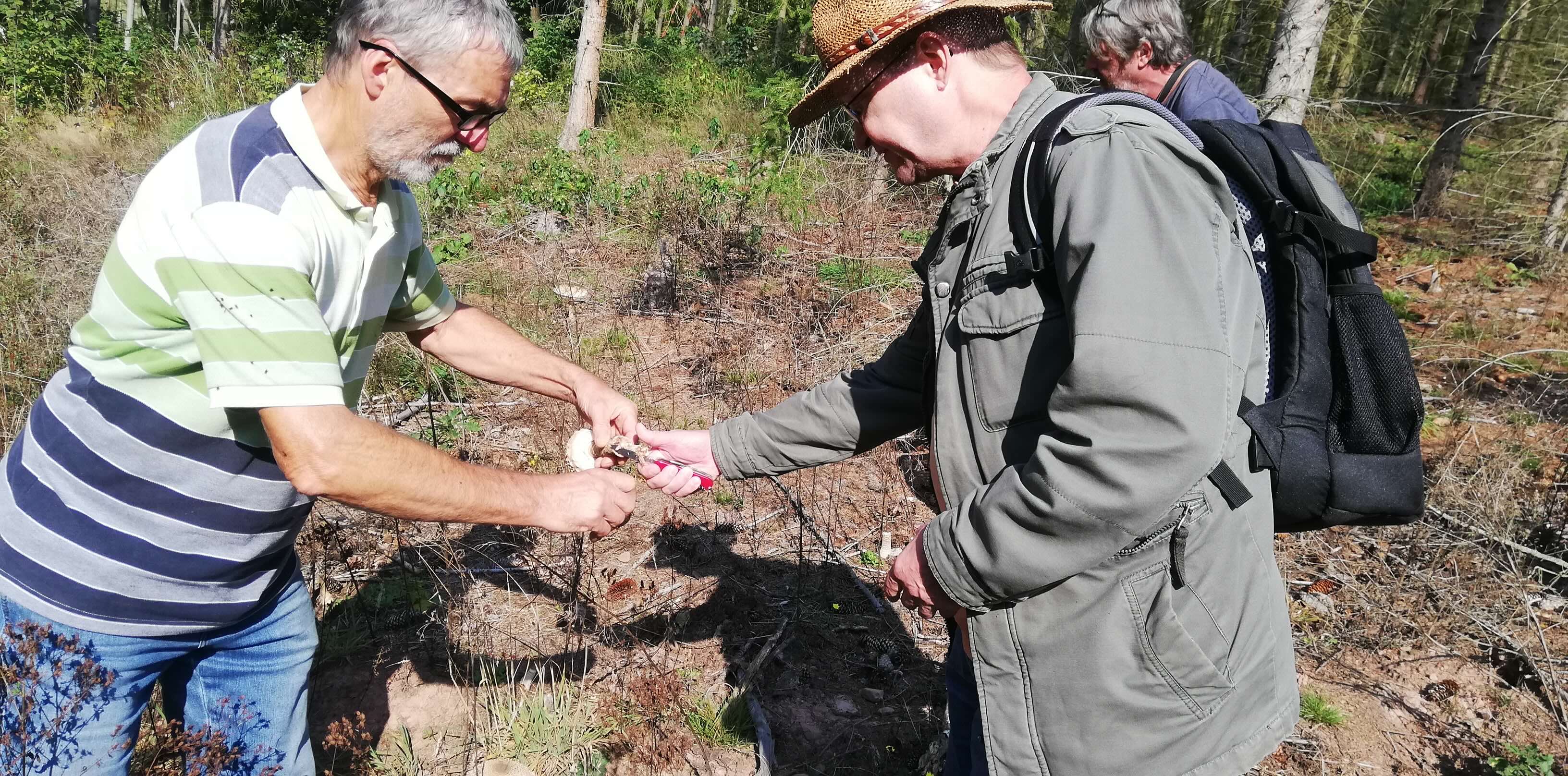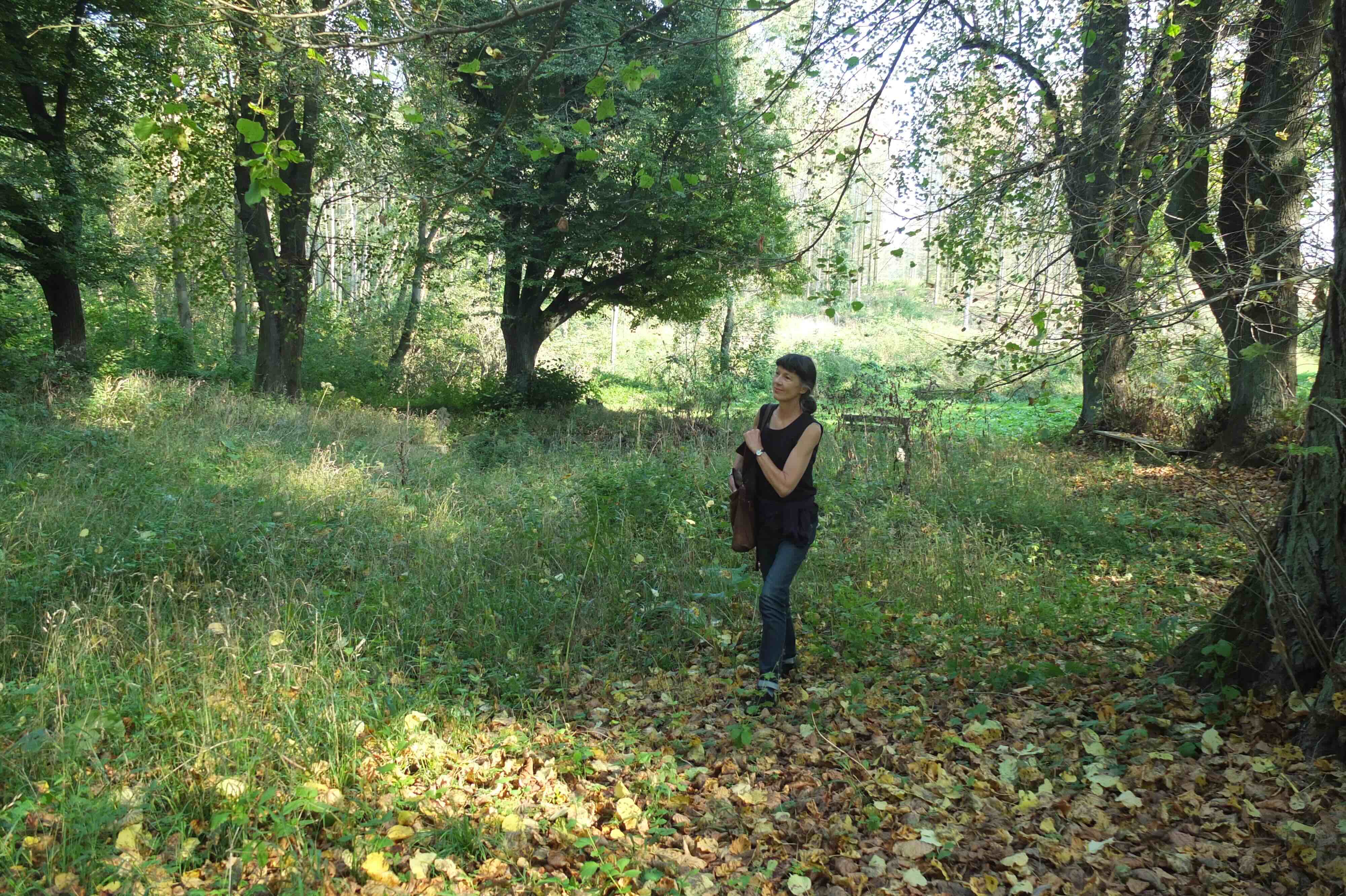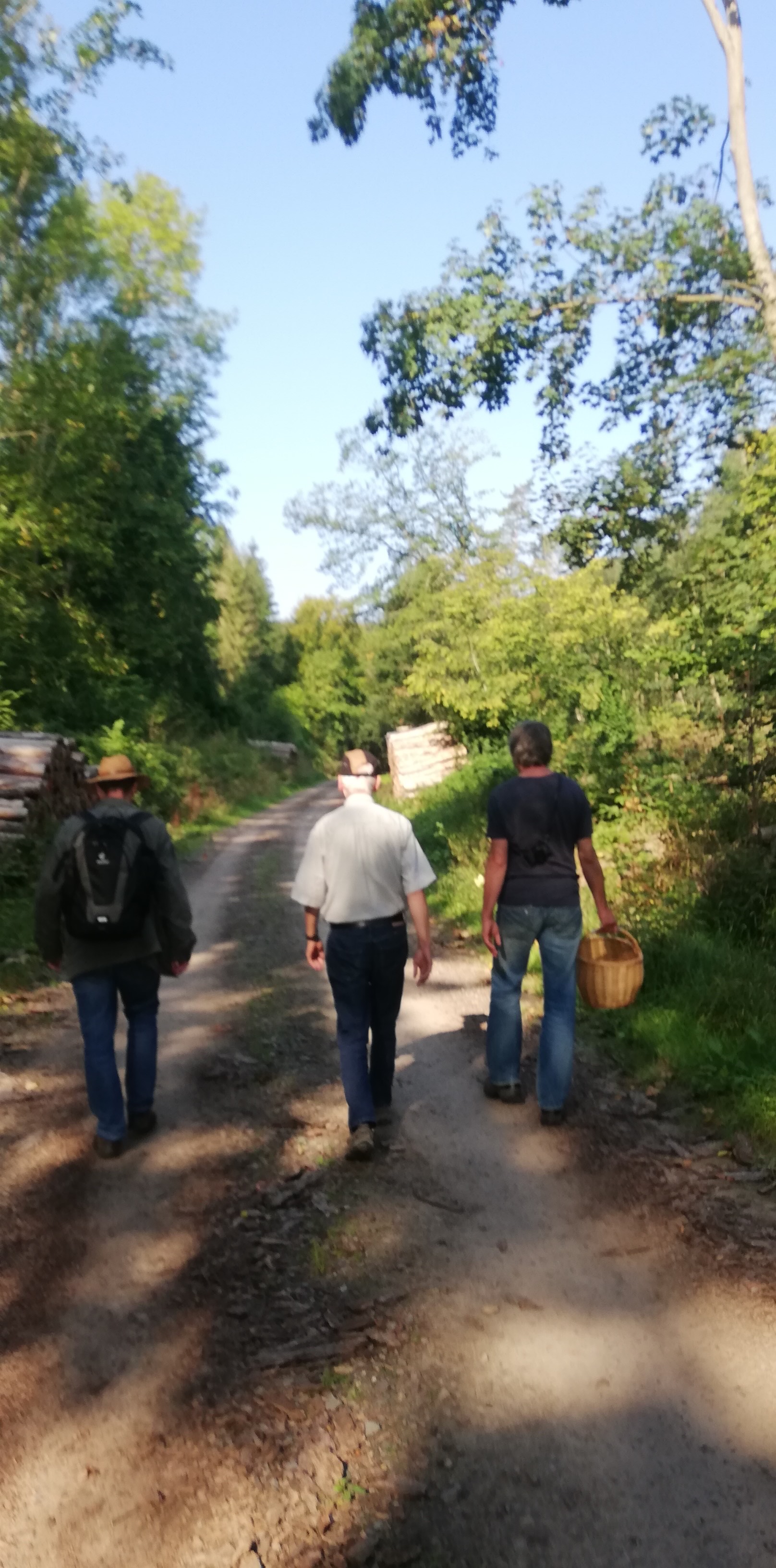 Rückweg durch den Wald, wo große Schirmpilze gesammelt werden.