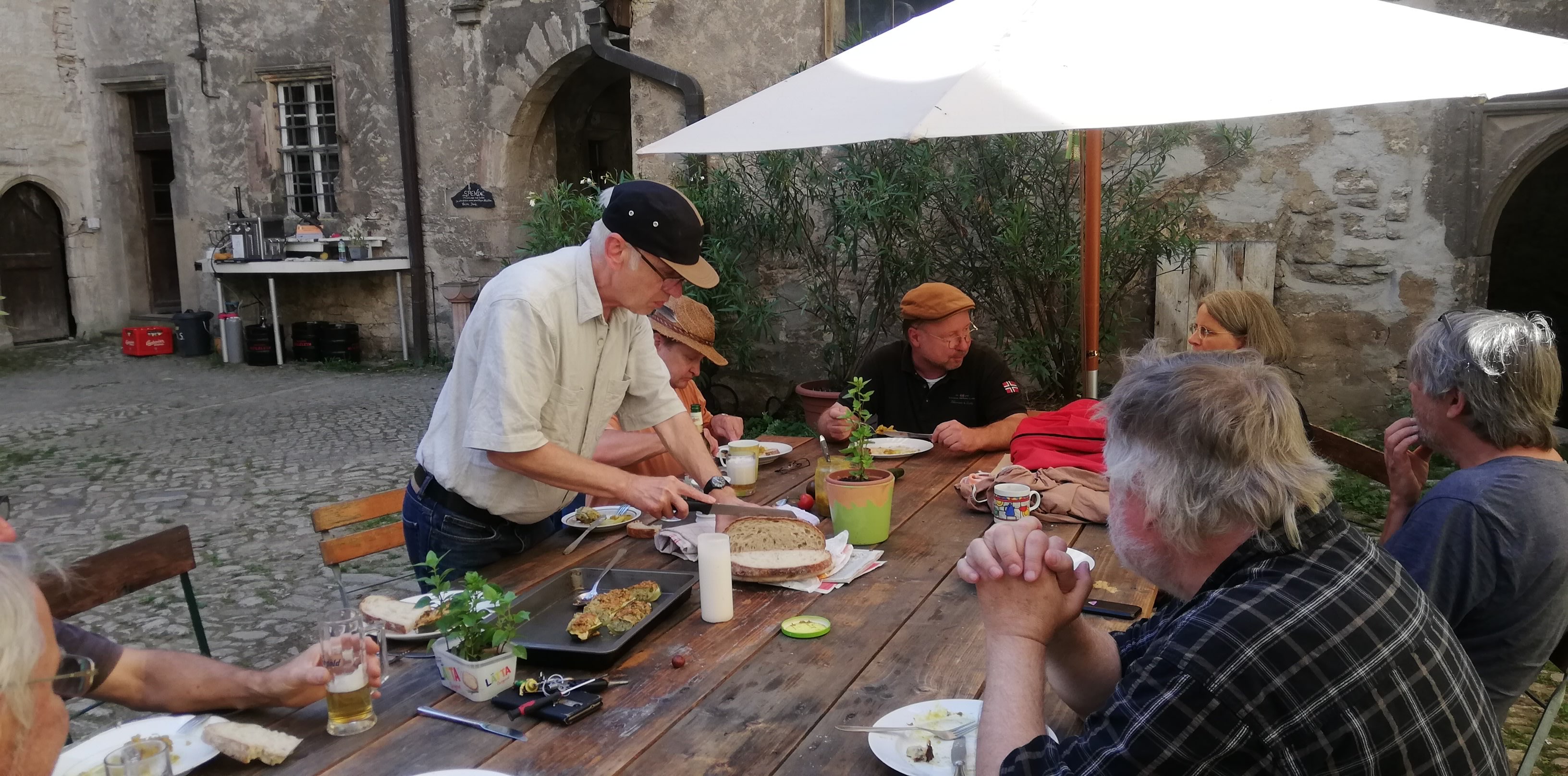 gemeinsames Frühstück im Schlosshof