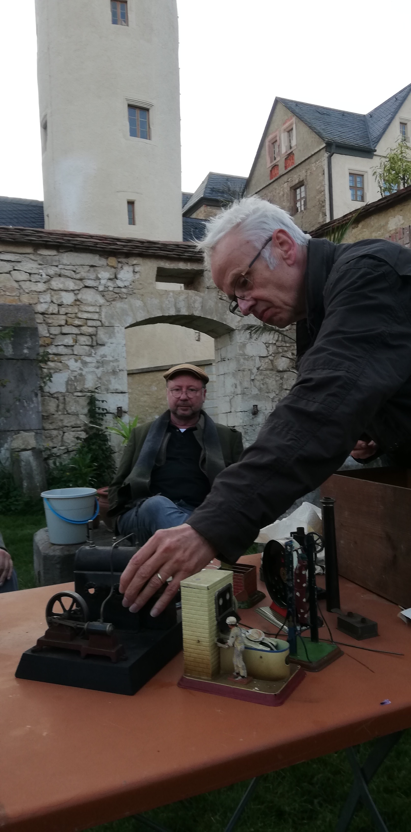Jakob Taube lässt eine Dampfmaschine auspacken